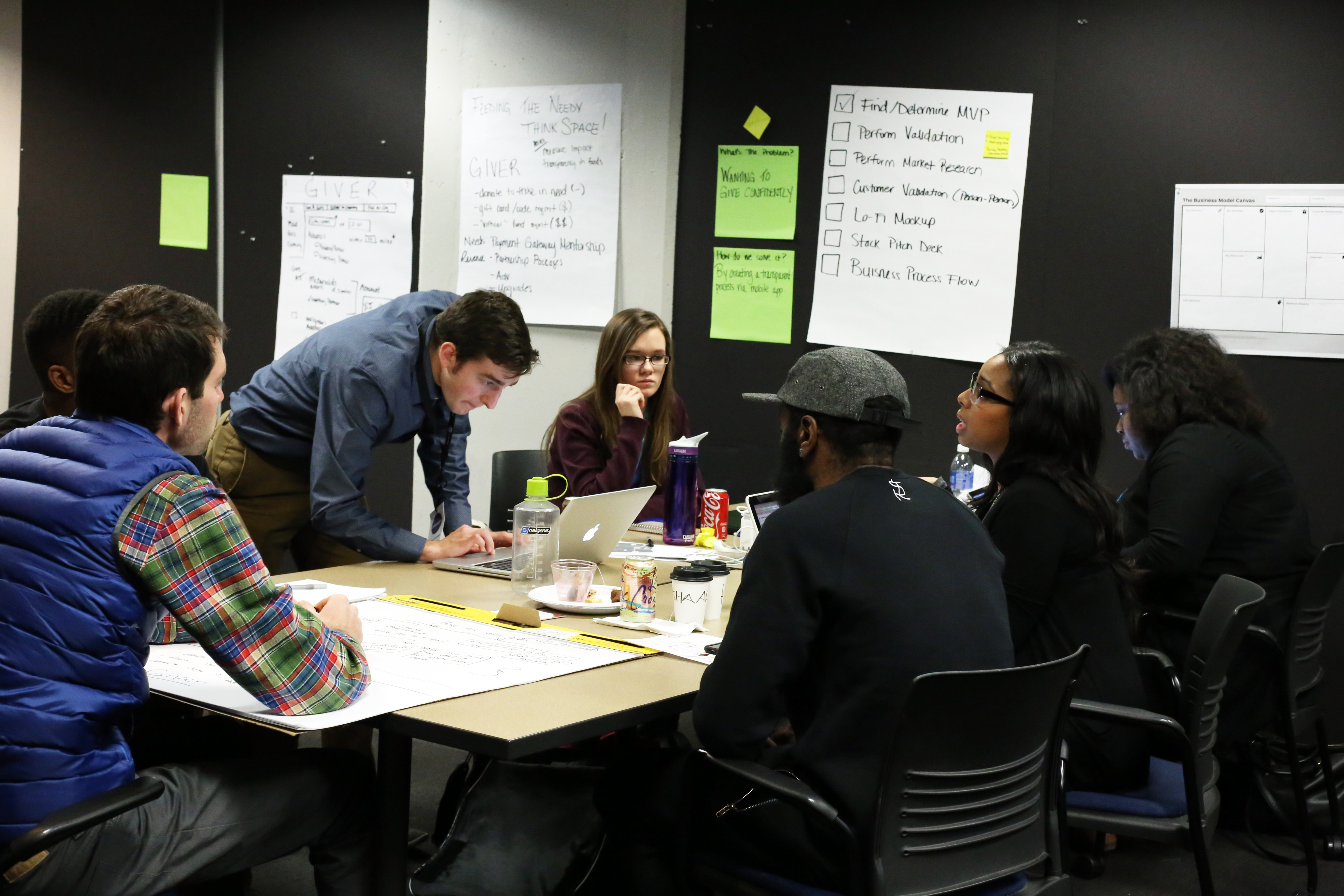 Teams will continue to develop their ideas throughout the day and will receive a crash course this evening in how to build a good pitch deck before departing to GR Current’s collaborative space to continue working on their presentations.