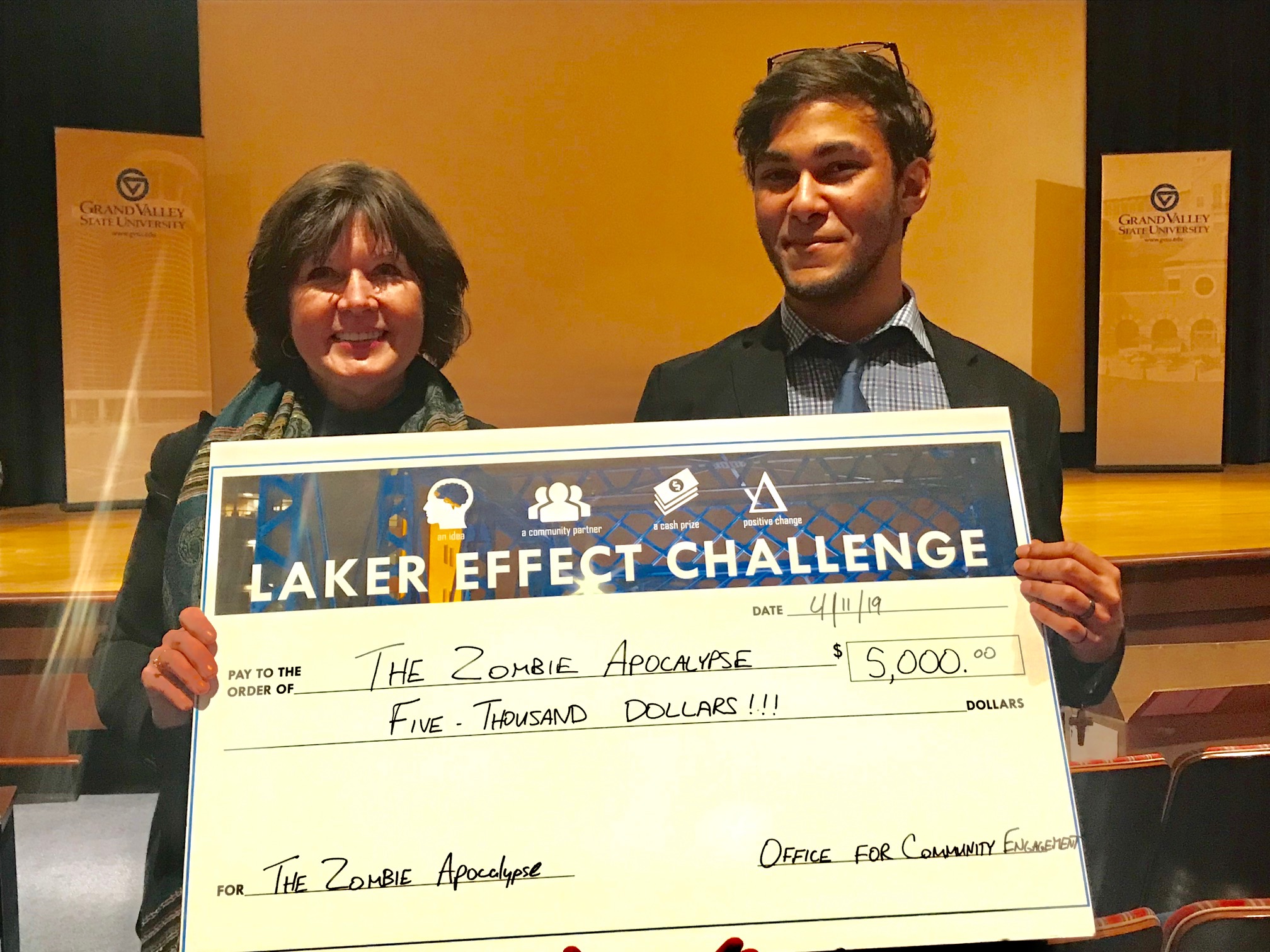 Nursing students and faculty won all the available prize money at Grand Valley State University’s Laker Effect Challenge, a pitch competition where students and staff team up with community partners to do something good for the community.