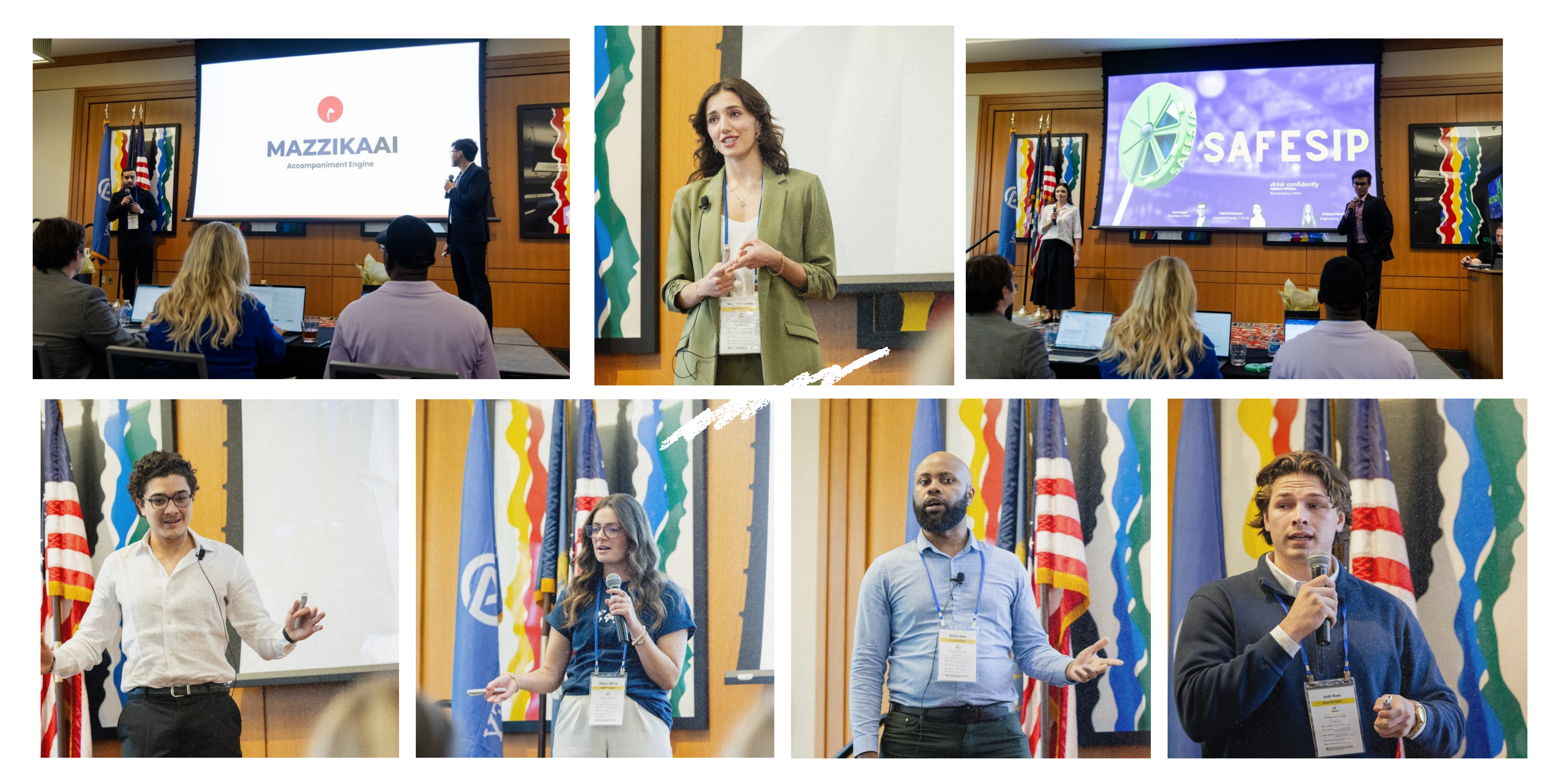 The main event featured seven standout finalists, each delivering a 3-minute pitch followed by a Q&A session with judges: